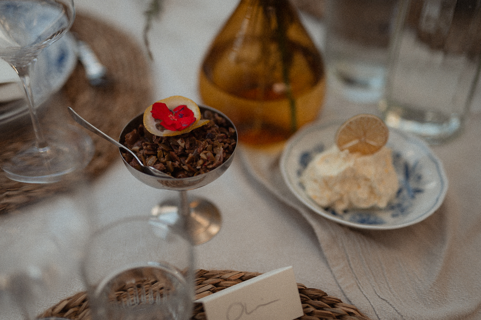 After checking in, our guests were welcomed with an aperitif at the pool. Along an extensive vegan family style dinner, we introduced our wine project and the according first wine.