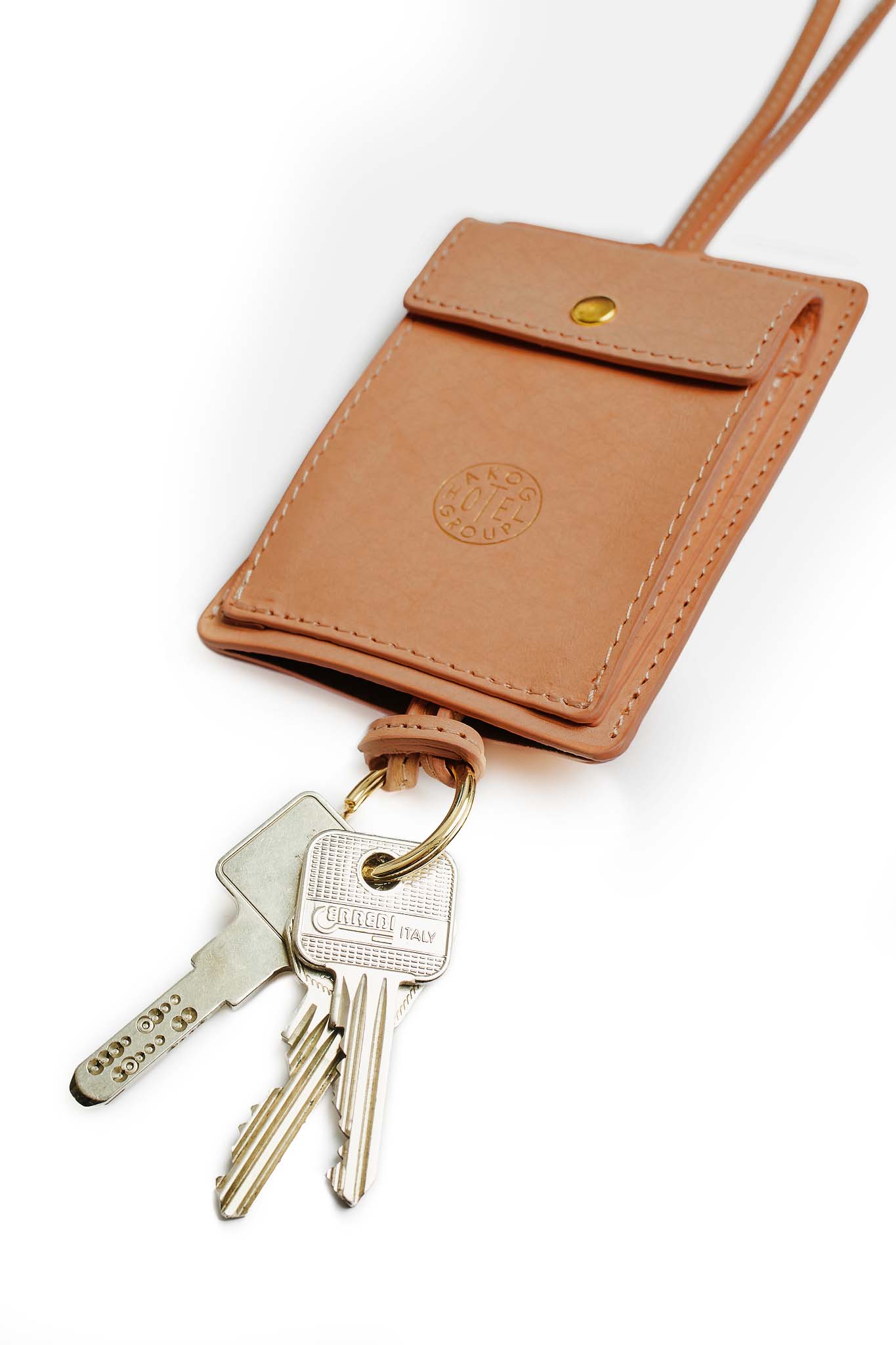 €110.00If for the daily use or while travelling around, with our key chain everything is at one place. While the bundle of keys is stored in the central insertion, the card holder is to be found in the back and the small pouch in the front, which closes with a press button. The front is also decorated with the AKOG Hotel logo in gold. Carefully made in Italy from vegetable-tanned and untreated leather.