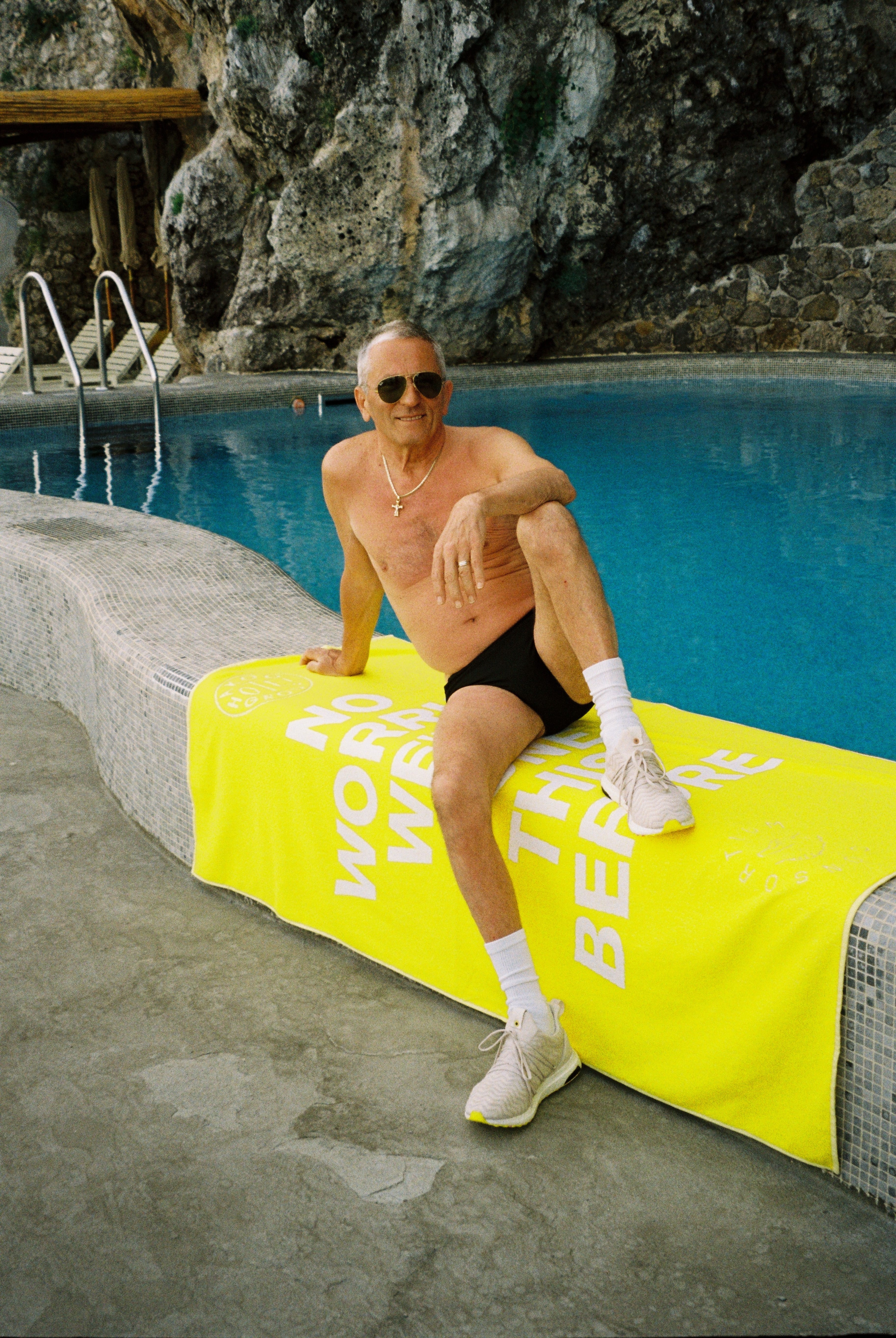 The AKOG Hotel Group created a special collaboration with Adidas and to shoot their new Consortium Ultra Boost trainer at the scenic waterfront of the Hotel Santa Caterina. The trainer – available in off-white or black – perfectly complemented the sun-bleached terrace and the deep blue waters of the Amalfi Coast.